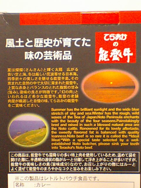 能登牛のレトルトカレー。