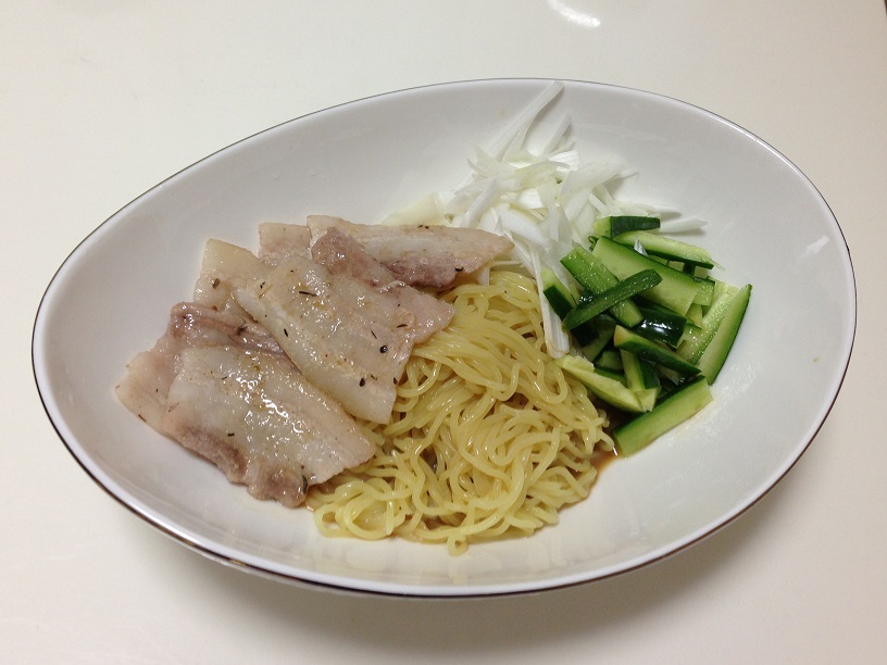 冷やし中華らしい具はキュウリしかなかったので、