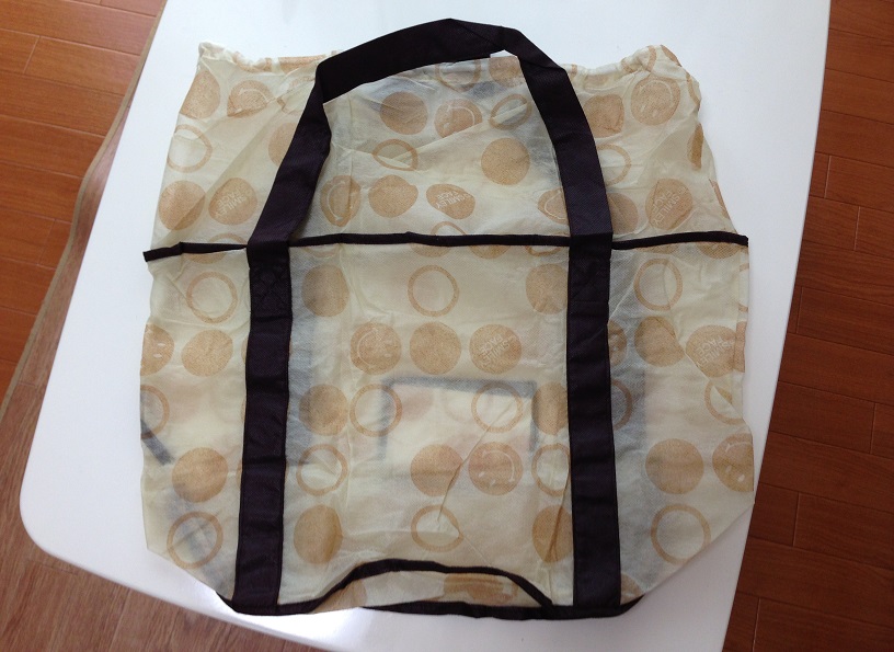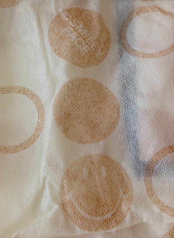 ぼんやりとスマイル柄の収納袋。