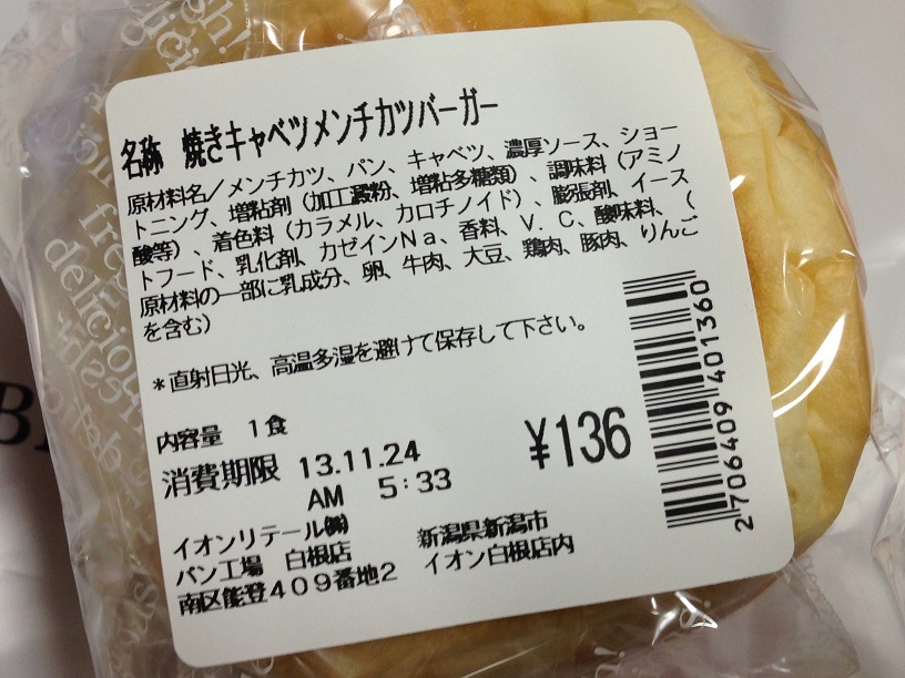 136円のハンバーガー。