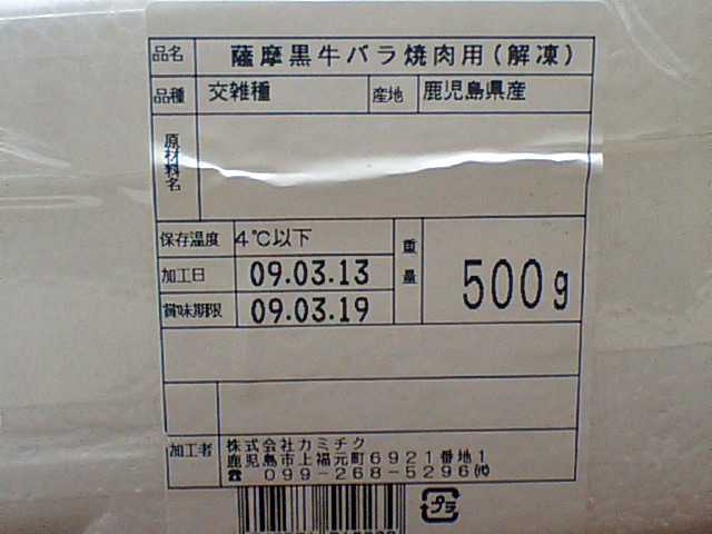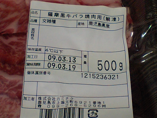 「薩摩黒牛バラ焼肉用」を