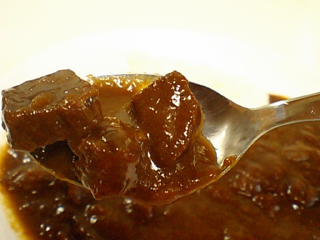 普通にカタいレトルトカレーにありがちな肉で、
