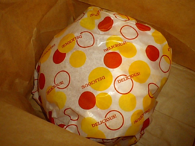 夜にテイクアウトしたハンバーガー、
