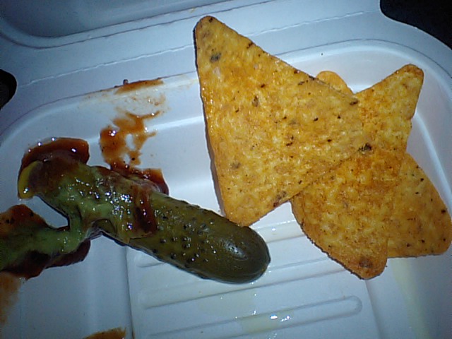 ピクルスとトルティーヤチップスつき。