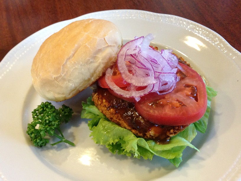 "豆とシリアルのパティで作ったベジバーガー"